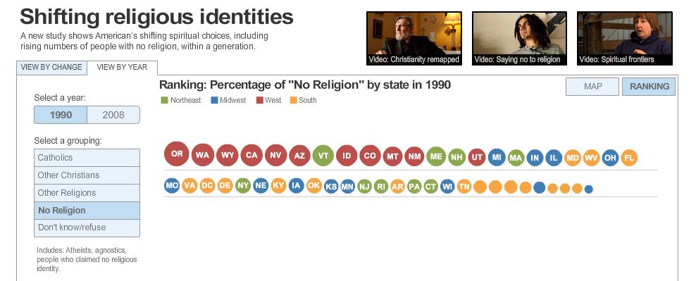 This nifty USA Today chart shows that back in 1990 Oregon was #1 in No Religion.