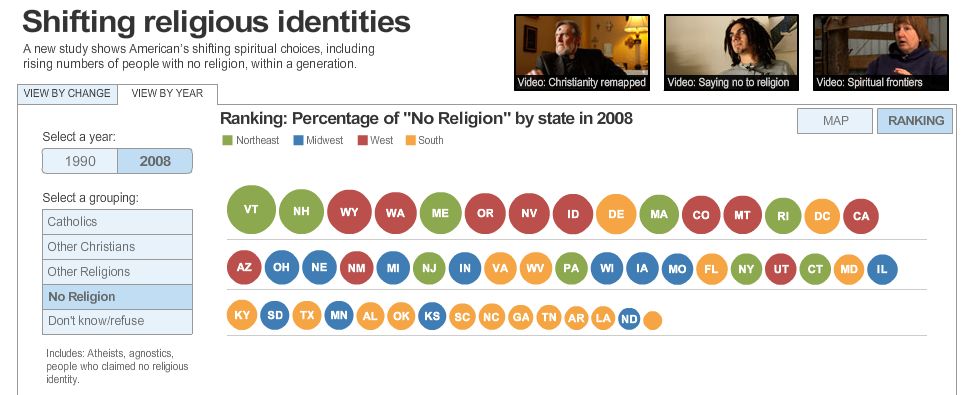 The South, though, is going to be a tough religious nut to crack. Arkansas and Mississippi aren't growing the faithless very fast. Need to send some anti-missionaries down there to do some unconverting.