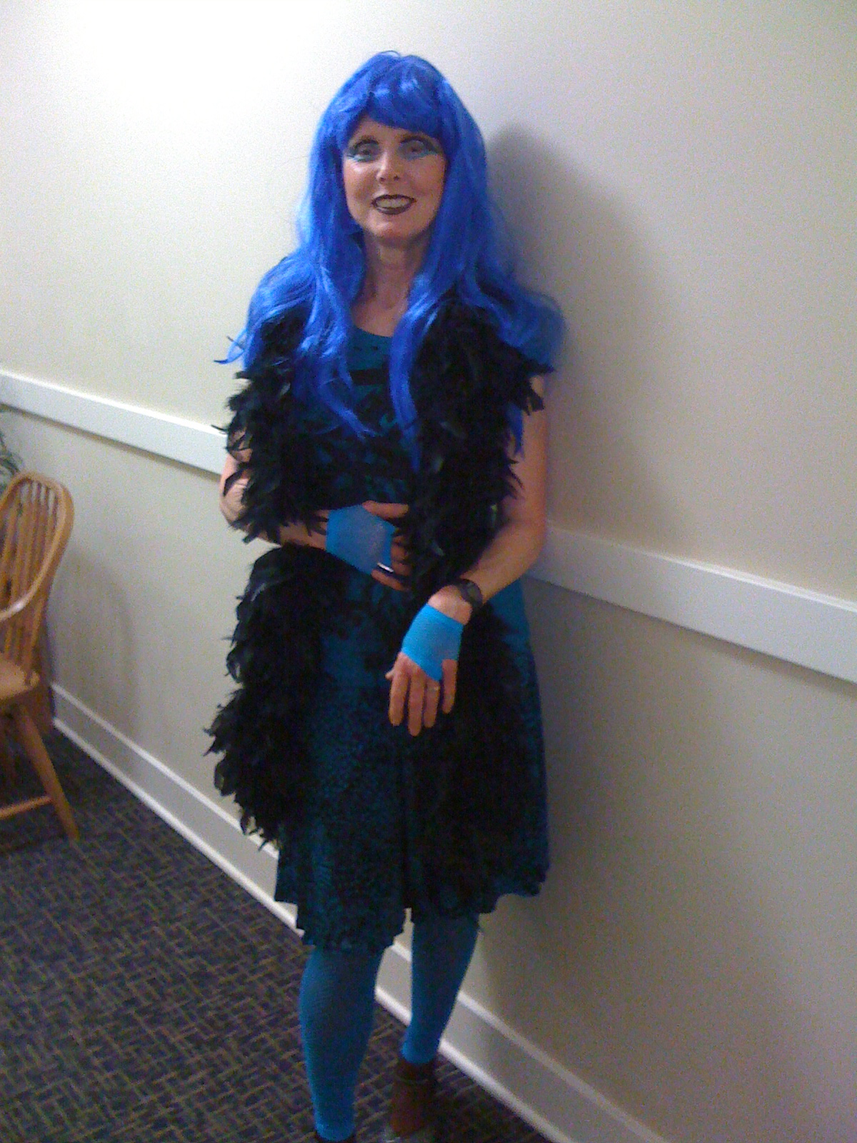 Yesterday, though, we decided to go to a Halloween dance at the RJ Dance Studio. Costumes, the notice said, were optional. My wife said, "let's do it." She likes to shop, so it was a pleasant and rather easy task for her to put together a cool blue outfit.