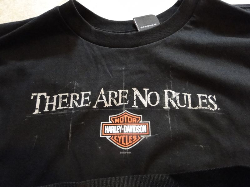 However, the Harley-Davidson philosophy of life — encapsulated on the t-shirt — fits with my churchless leanings.