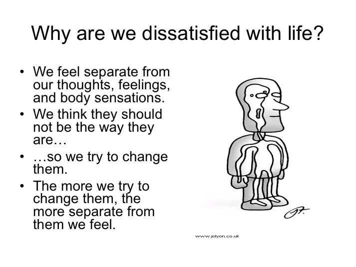 This slide makes the same point. Again, I don't find that trying to change something — whether inside or outside of me — produces an increased sense of separation. As dishes pile up in our sink, there comes a point when I think, "I should put them in the dishwasher."