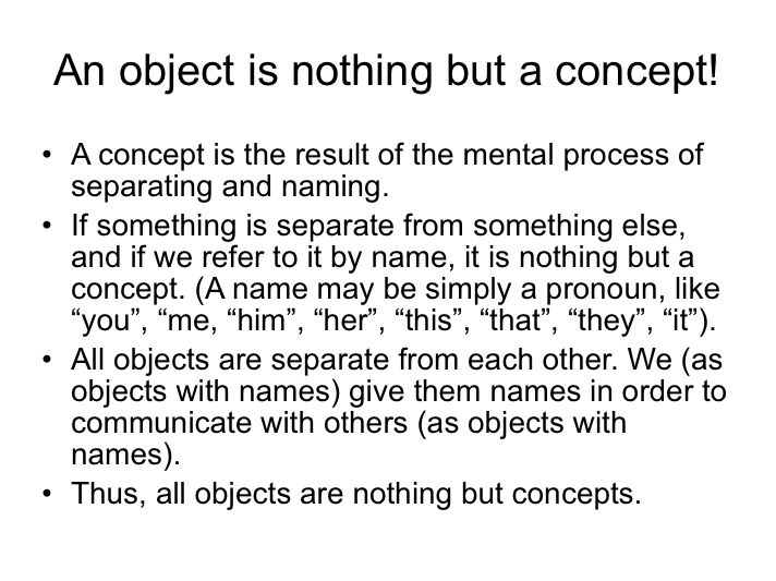 But to say that an object is nothing but a concept…hmmmmm. Maybe, maybe not. This seems to be a philosophical notion that could be debated endlessly, like so many other, well, concepts.