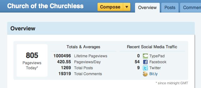 One million pageviews. Thanks, blog visitors.