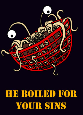 As we devotees of the Flying Spaghetti Monster like to say, "He boiled for your sins" and "Have you been touched by his noodly appendage?" This uplifting theology certainly deserves a place on the Bremerton High football field after games.