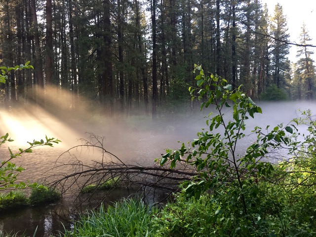 The setting sun illuminated the fog through the Ponderosa trees that line the Metolius. I was struck by how pitiful manmade cathedrals are compared to the beauty nature effortlessly produces.