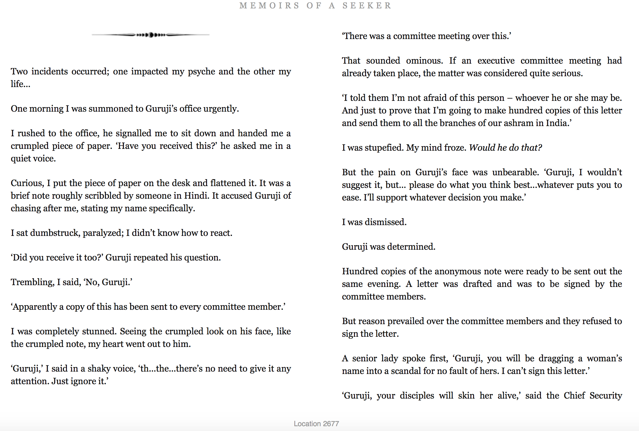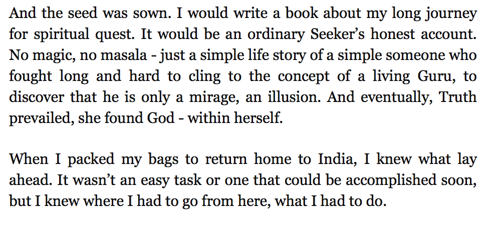 After someone told me about a book, "Memoirs of a Seeker," that described a woman's relationship with a guru, I purchased the Kindle version.