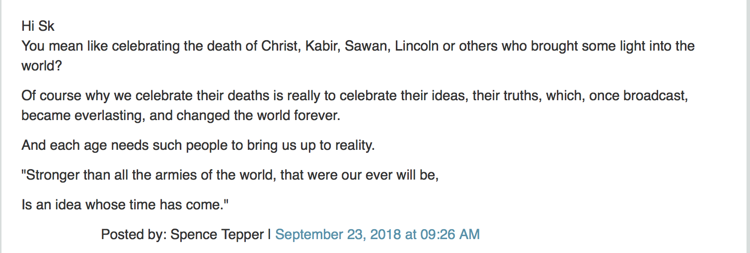 It would be rank hypocrisy on my part if I did not mention, in the same breath that I unqualifiedly criticize the comment of this “Sk”, a very similar comment that I read on this blog not long back. Here’s the link to that comment : https://churchofthechurchless.com/2018/09/heres-the-truth-about-why-i-started-criticizing-rssb?cid=6a00d83451c0aa69e2022ad390a5ef200d#comment-6a00d83451c0aa69e2022ad390a5ef200d .