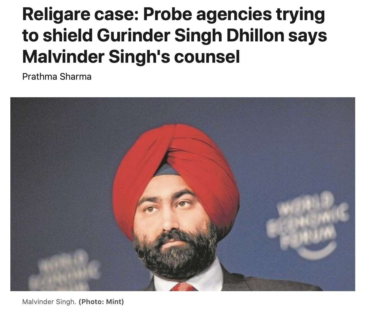 This accusation has been made before by attorneys for Malvinder Singh, and it was made again last Tuesday, November 26. Here's a LiveMint story about the latest turn of events in the ongoing saga of how a guru, Gurinder Singh Dhillon, appears to be deeply involved in financial fraud.