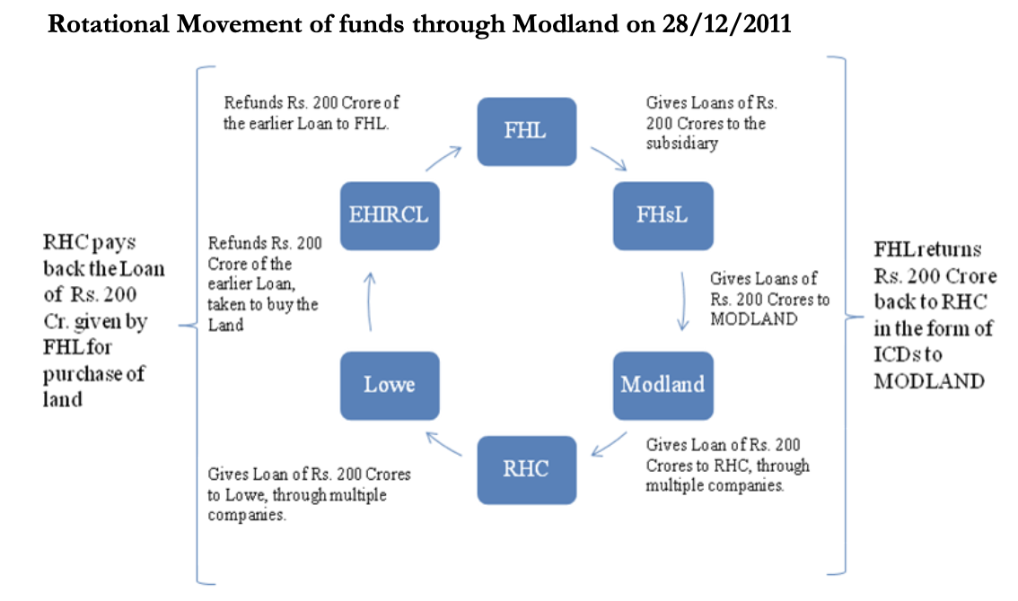 That second paragraph describes what's been called "round trip" financial transactions. These caught the eye of the Securities and Exchange Board of India (SEBI), which called them fraudulent. The SEBI report contains a diagram of one day's circular, or round trip, transactions.