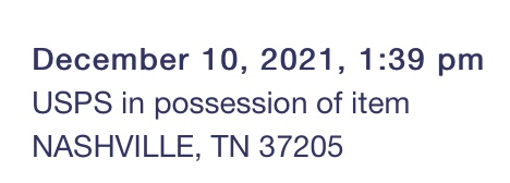 The tracking number showed that the package was mailed from Nashville, Tennessee.